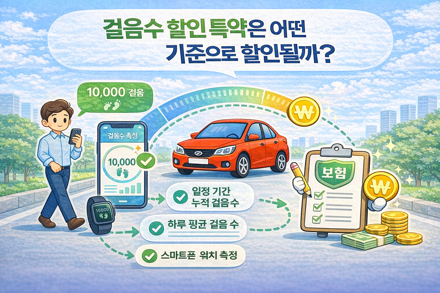 걸음수 할인 특약은 일정 수준 이상의 걷기 활동을 유지하는 운전자를 대상으로 보험료 할인 혜택을 제공하는 구조를 가진 특약입니다. 이 글에서는 걸음수 할인 특약이 어떤 기준으로 할인 혜택이 적용되는지 기본적인 원리를 중심으로 정리해 보겠습니다.